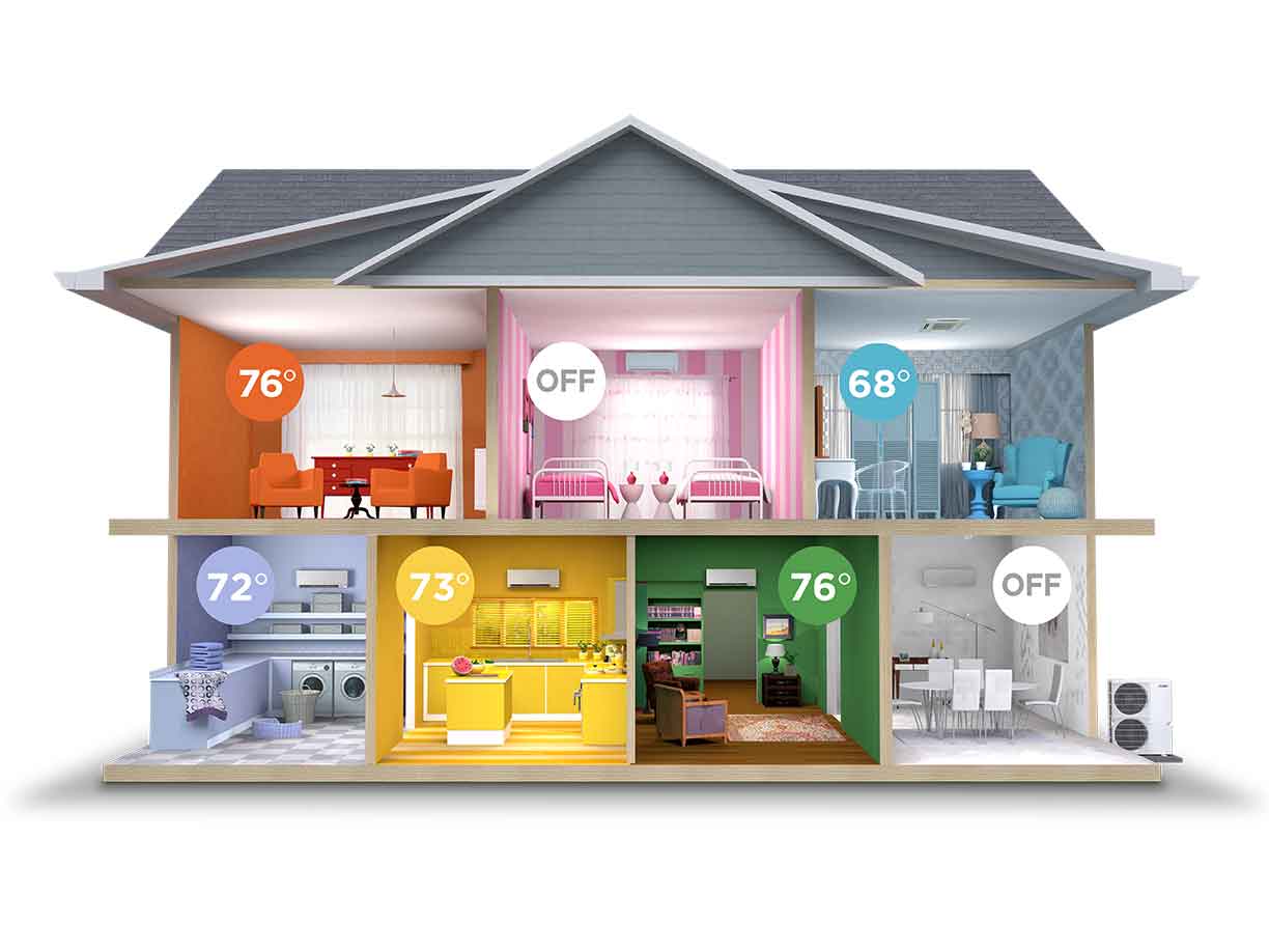 With VRF technology, you can now have different zones throughout your building with customized temperature control settings. You can opt for a heat pump or heat recovery system. The heat pump system can provide all heating or cooling to different zones with customized temperature control comfort. With a heat recovery system, you can actually provide heating and cooling simultaneously to different rooms in your building. If you have a server room or a room dedicated to cryptocurrency mining, you can have these rooms cooled while other parts of your home or building are being heated.